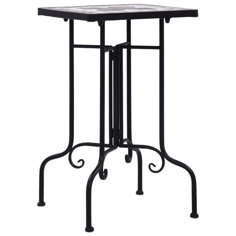 Black and White Iron Mosaic Side Table Durable Small Outdoor Table