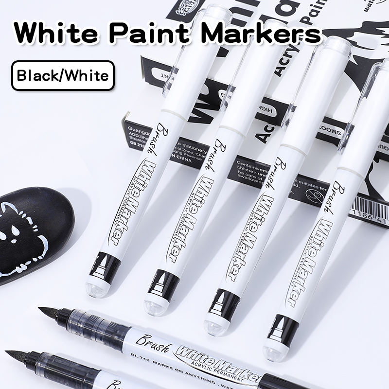 Black and White Soft Brush Tip Permanent Acrylic Paint Pens for Drawing