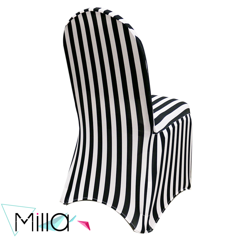Black and White Stripe Stretch Spandex Chair Cover for Wedding Hotel Dining Room Durable Polyester Material