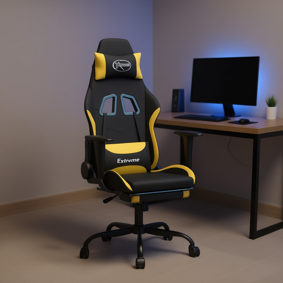 Extreme Gaming Chair Black Yellow PU Leather 4D Armrest Reclining 5 Star Base Casters