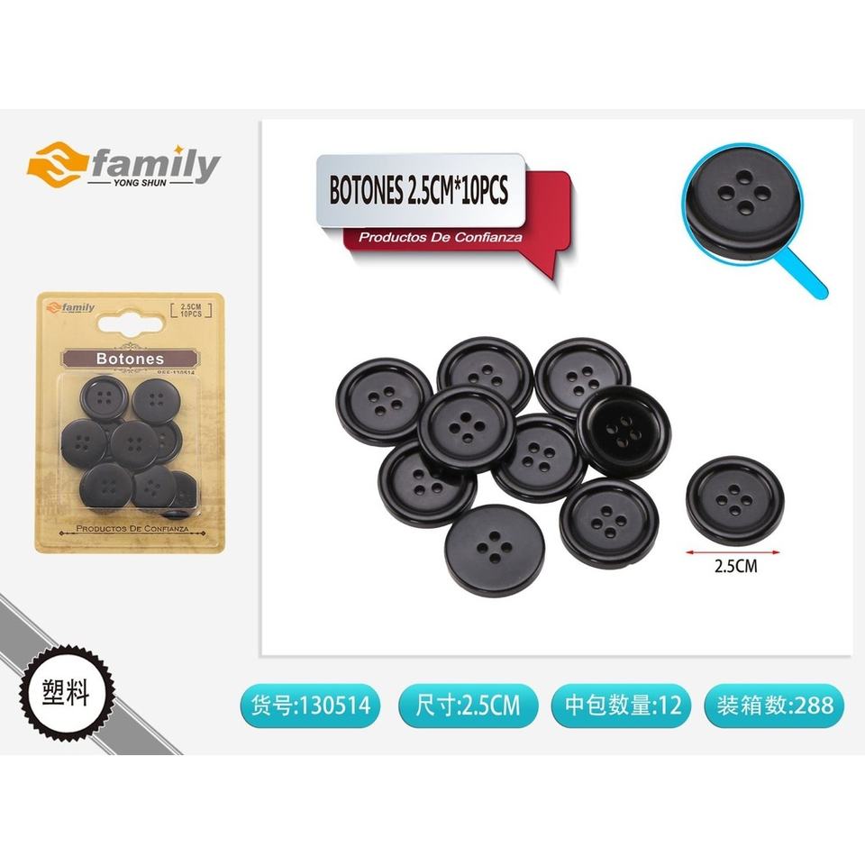 Bottoni neri 2.5 cm (10 pz)-accessori per cucire