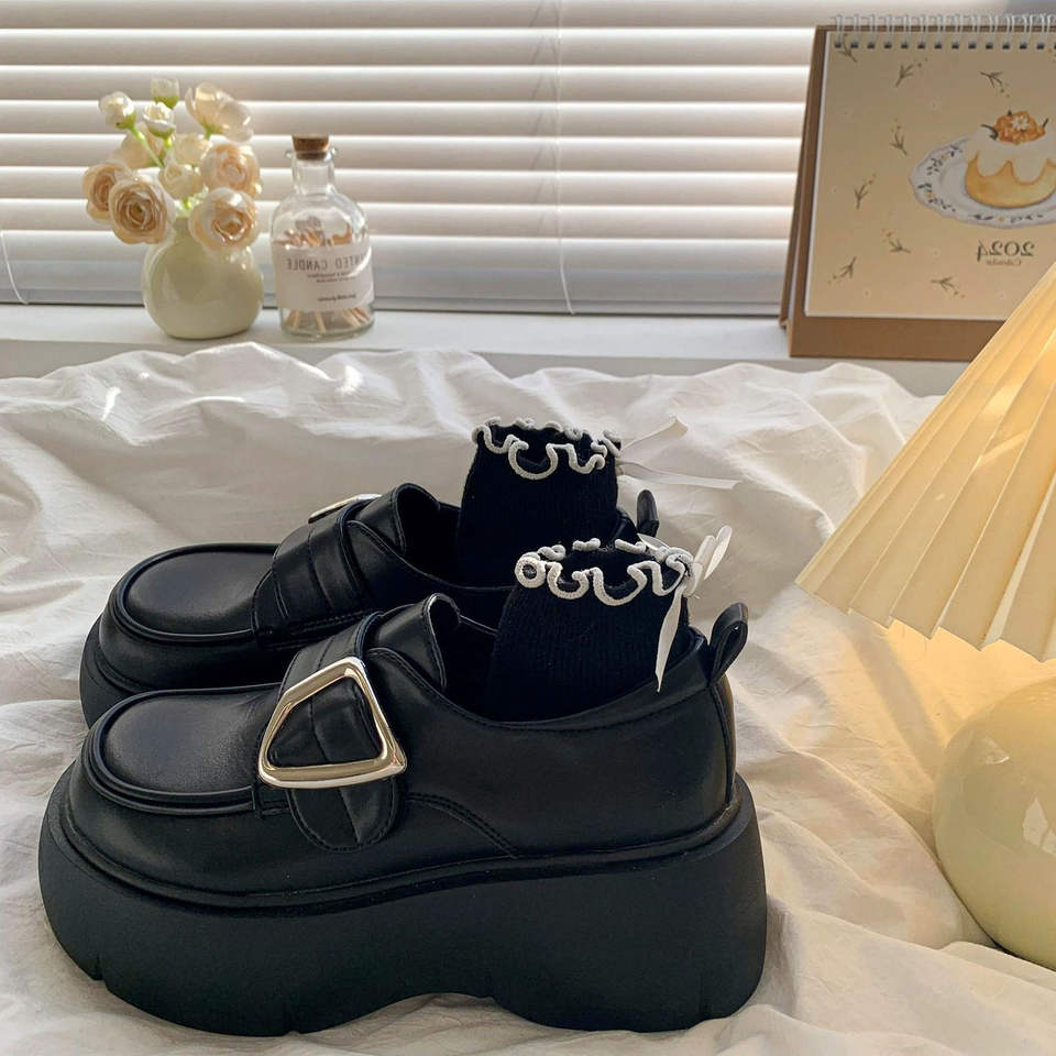 Collezione primavera 2025 scarpe da donna stile retrò in pelle nera stile britannico con plateau di Sole spesse a punta tonda altezza crescente