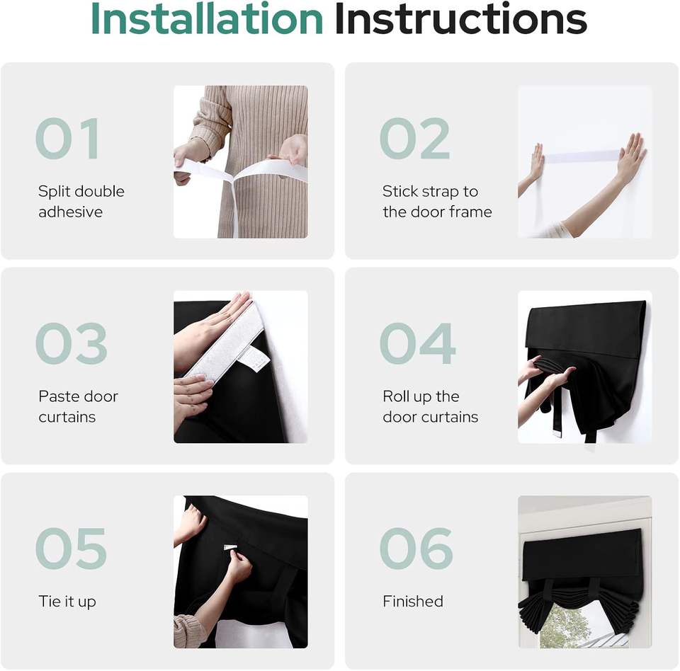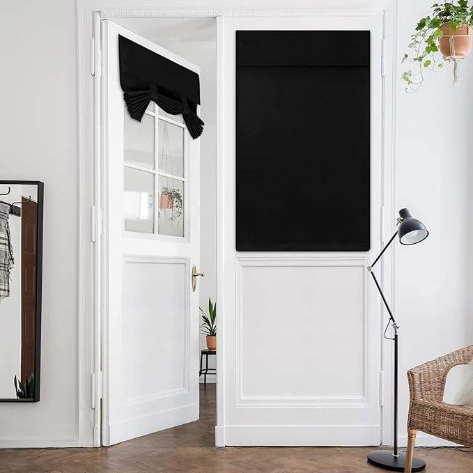 Blackout French Privacy Door Curtains Door Window Curtains Glass Thermal Insulated Tie Shade Window Covering Bedroom No Pattern