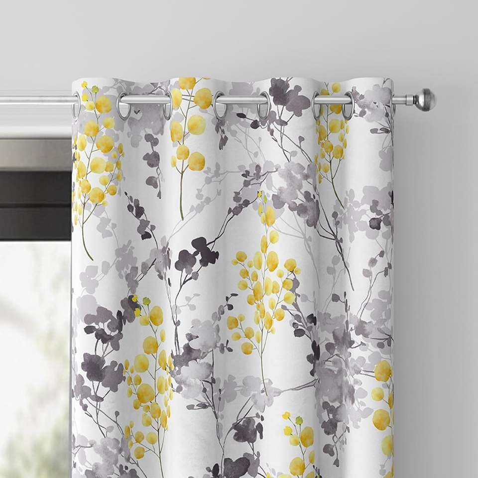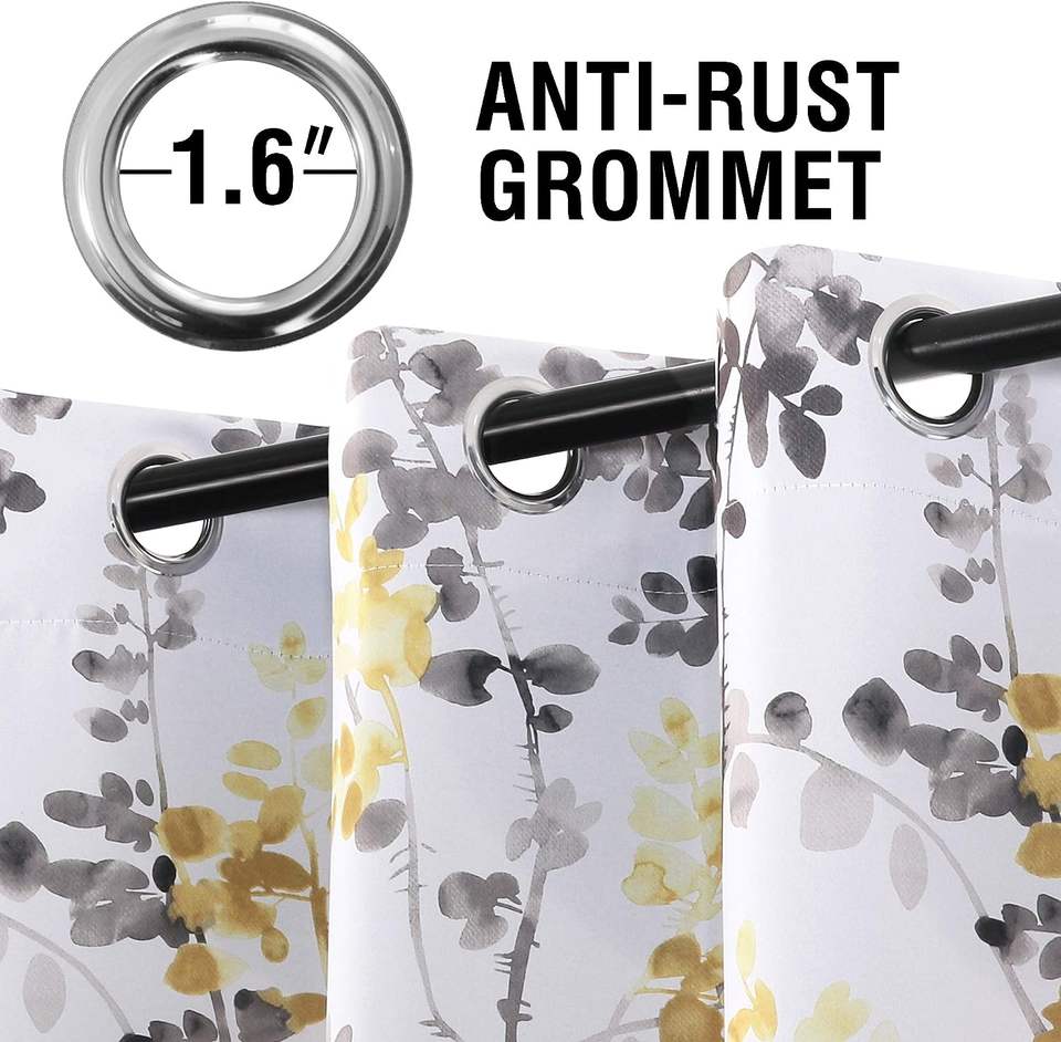 Blackout Grommet Eyelet Curtains Vintage Yellow Floral Printed Thermal Insulated Drapes Curtain for Living Room Bedroom Window