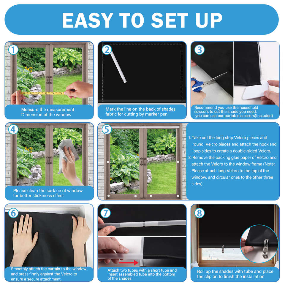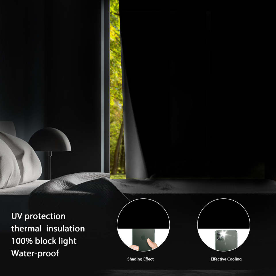Blackout Window Shades 36x72 Inch Black Light Blocking Curtains For Home Office Sun Protection No Drilling Installation