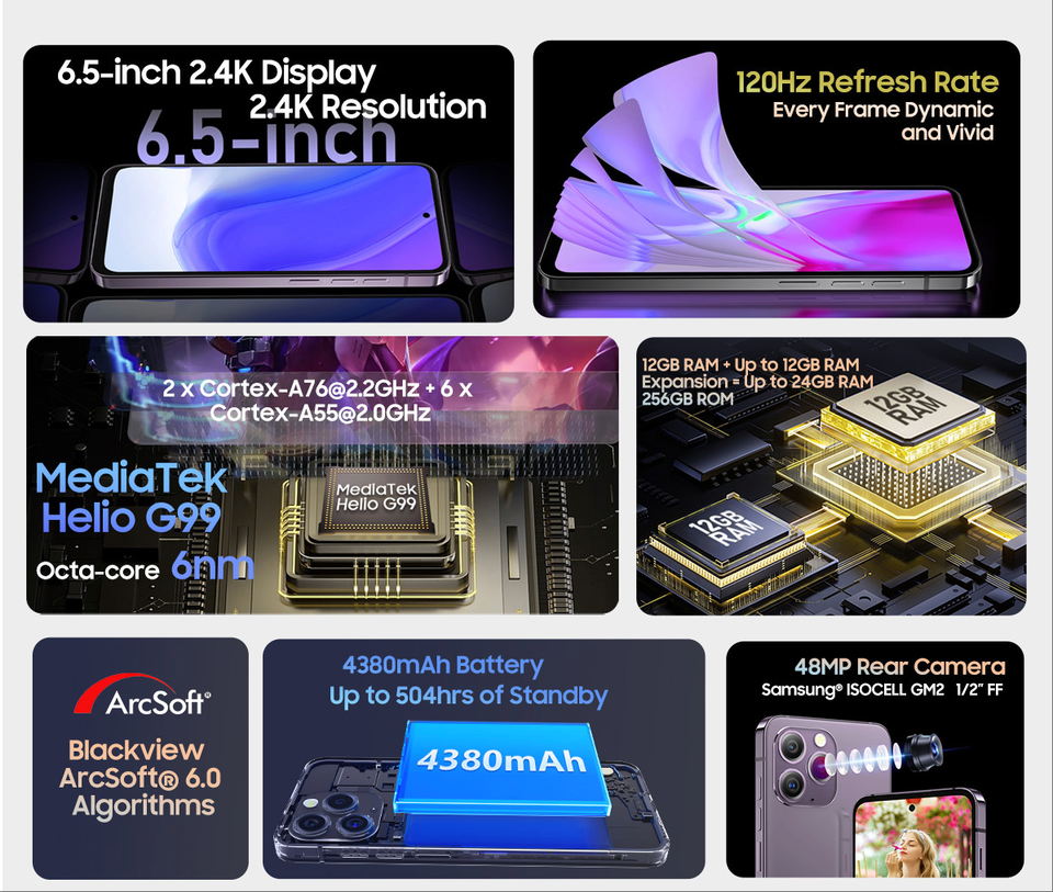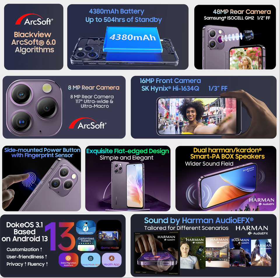 Blackview A96 Octa Core LTE 8 256GB/12 256GB 6.5" 4380mAh Telefono Cellulare 4G Consegnato a Hong Kong