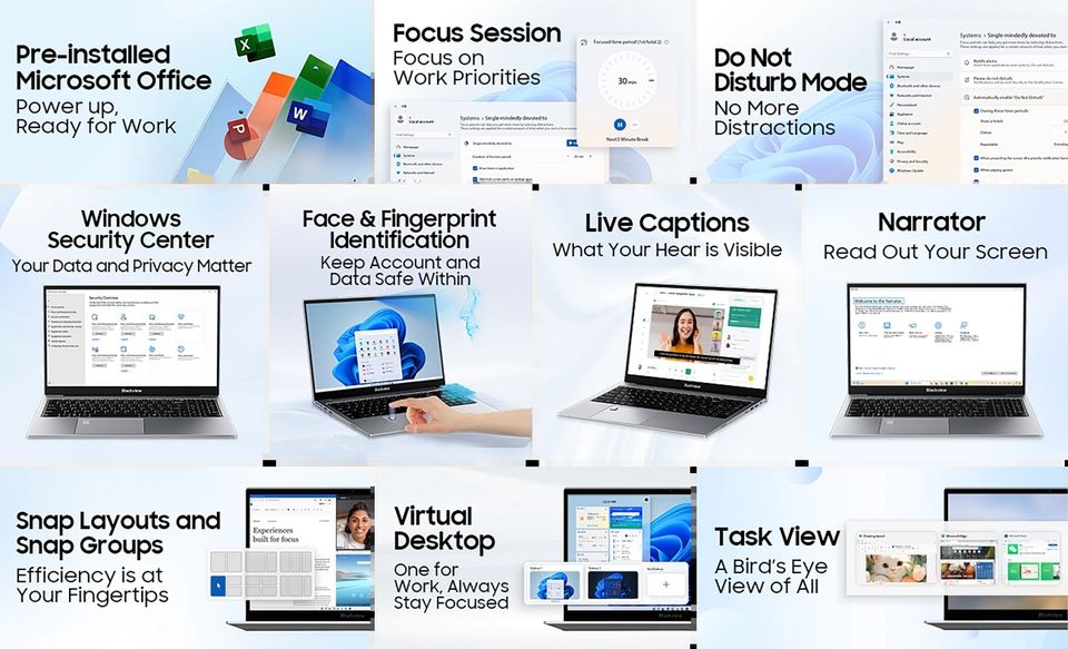Blackview Acebook 8 Notebook 15.6 Pollici FHD+ 12a Generazione Intel N97 Windows 11 Laptop 16GB DDR4 512GB NVME/SATA SSD Desktop