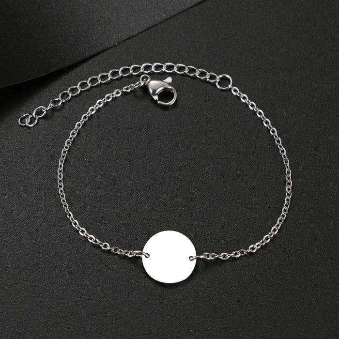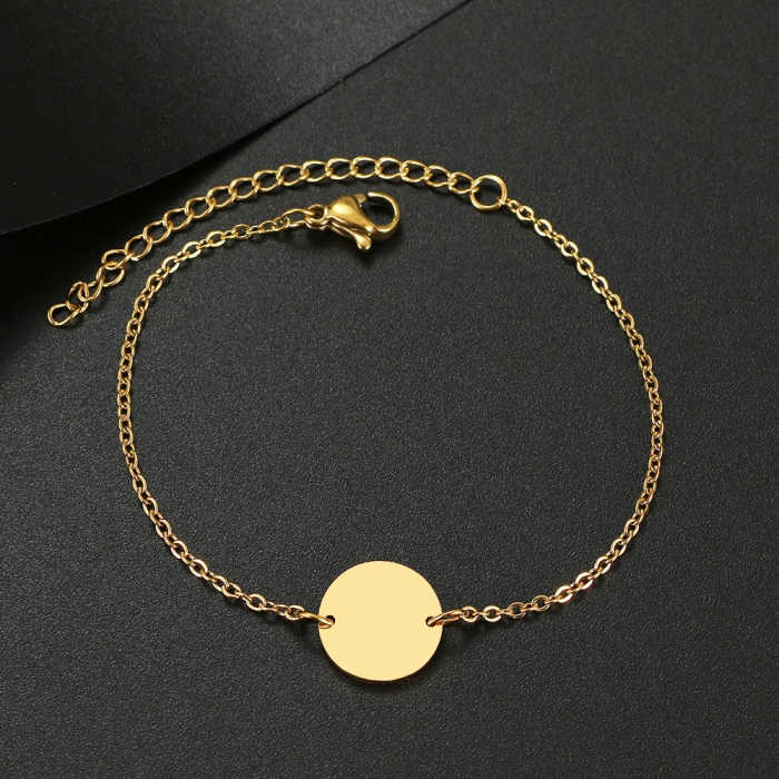 Blank Charms to DIY Custom Engraved Gold Plated Minimalist Stainless Steel Round Disc Coin Charm Pendant Bracelet for Men Women
