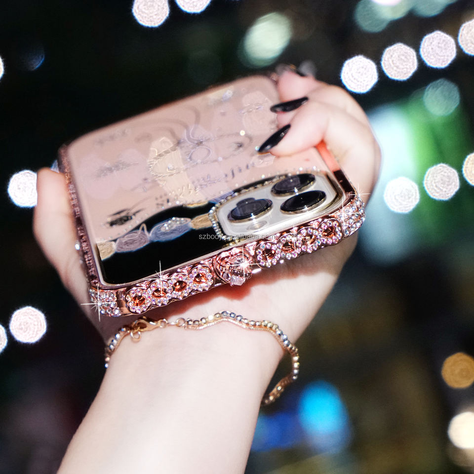 Nome del prodotto:Custodia per telefono con specchio in strass glitterato