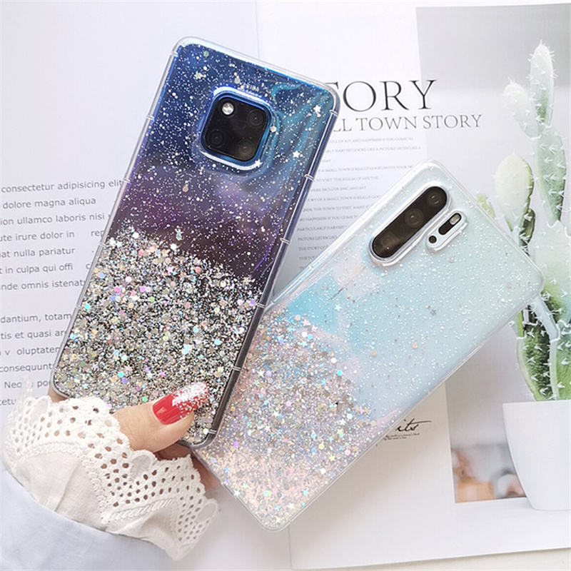 Custodia per telefono trasparente con stella glitterata bling per Huawei P30 Lite P20 Pro P40 pro Honor 20 Mate 30 y9 prime 2019 cover trasparente in silicone