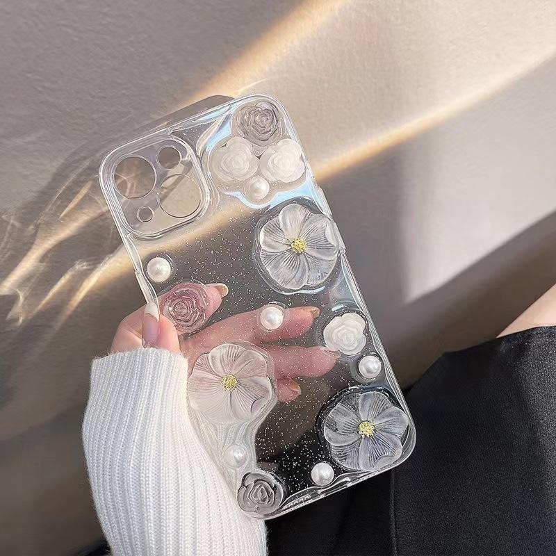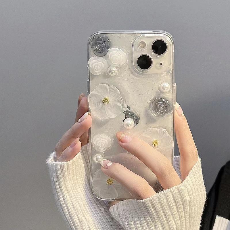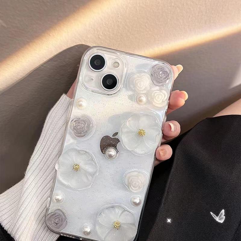 Custodia per telefono con Design Bling fiore bianco per iPhone 15 14 Pro Max accessori per cellulare custodia per cellulare