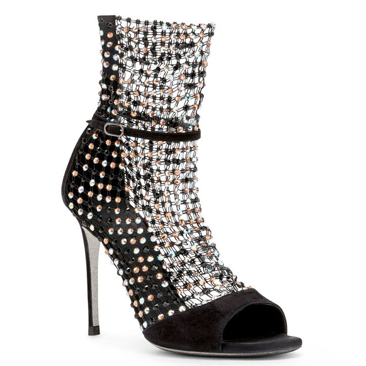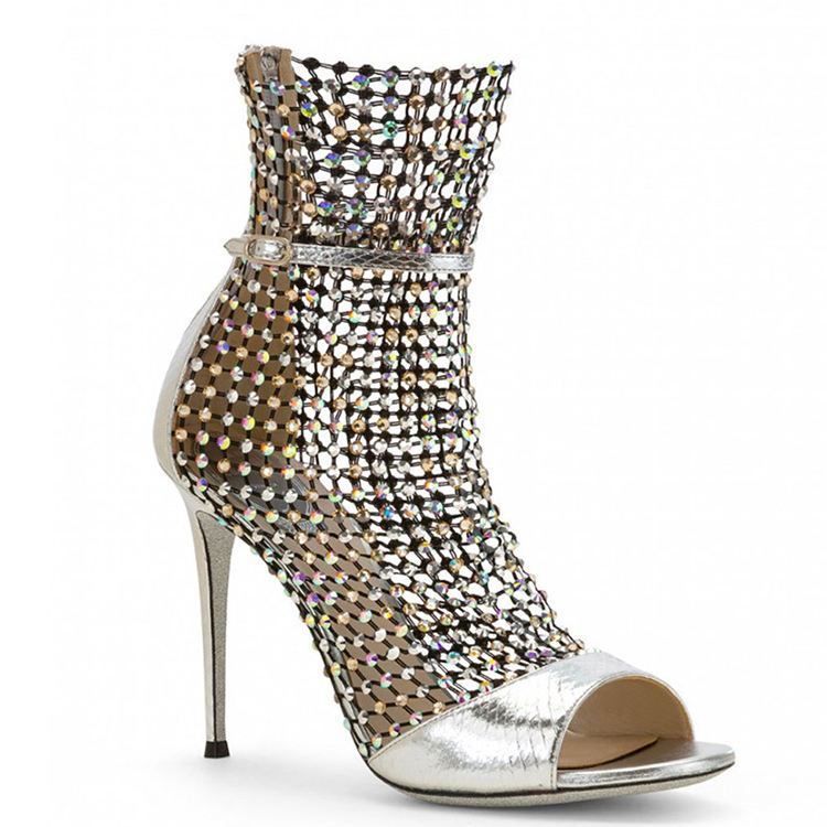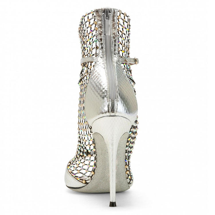 Nome del prodotto::Sandali con strass di cristallo a buon mercato da donna scarpe con tacco alto lucido