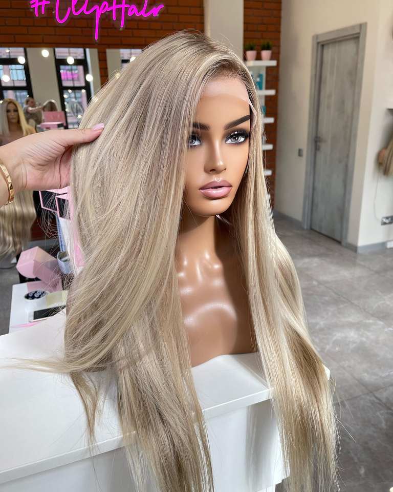 Blonde Balayage Color European 13x4 Hd Virgin Human Hair for High Level White Women Cuticle Aligned Lace Frontal Wig Pre Plucked
