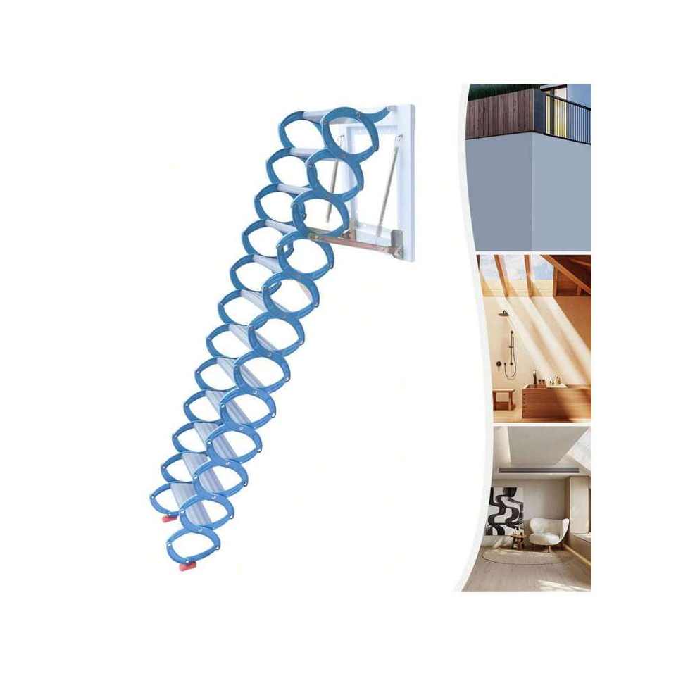 Scala a scomparsa blu a 12 gradini in lega con accesso a mansarda scale pieghevoli montate a parete per uso domestico