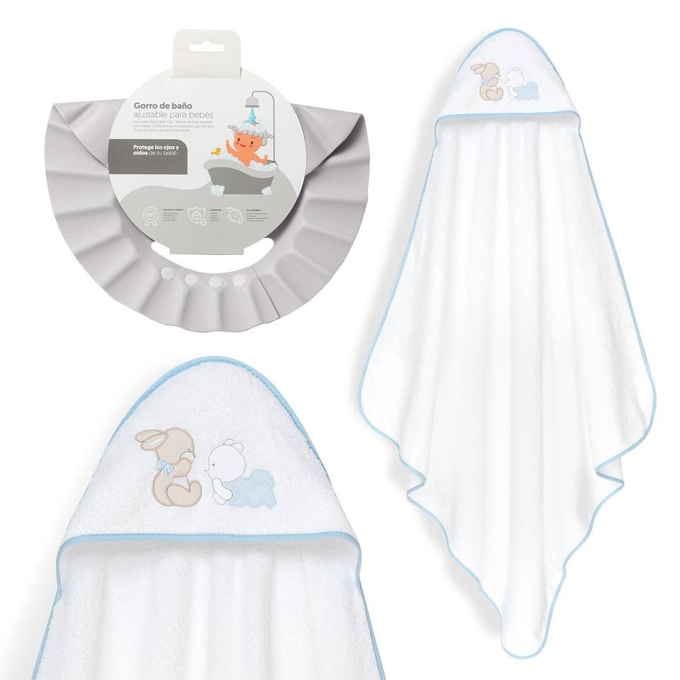 Blu 1X1 MT. Set di Asciugamani da Bagno Mod Oso Tumbado Conejito con Cappello per il Bagnetto del Bambino