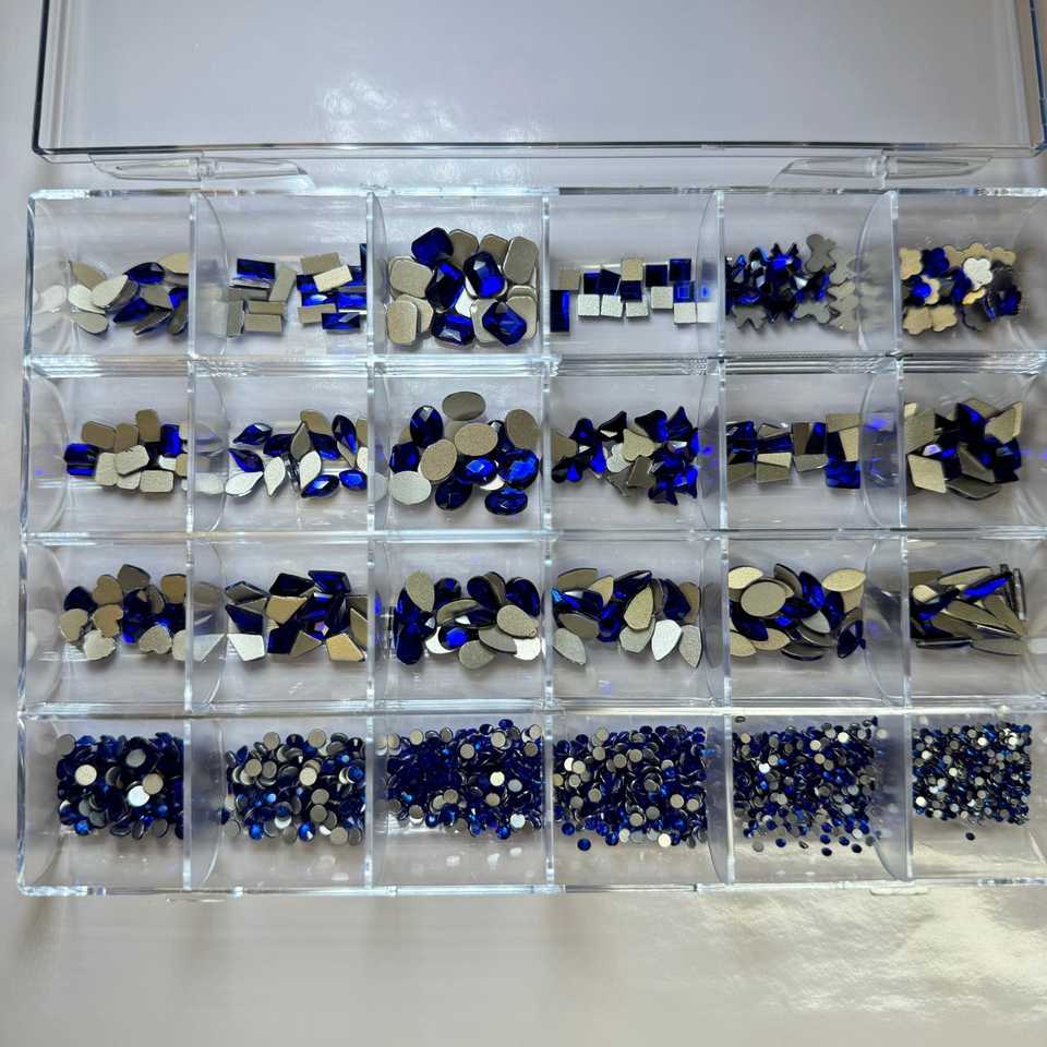 Strass per Unghie A10jet Blu Grana 24 di Alta Qualità, Diamanti in Plastica Acrilica, Vetro 3D, Confezione alla Moda per Uso Fai-da-Te con Retro in Gel