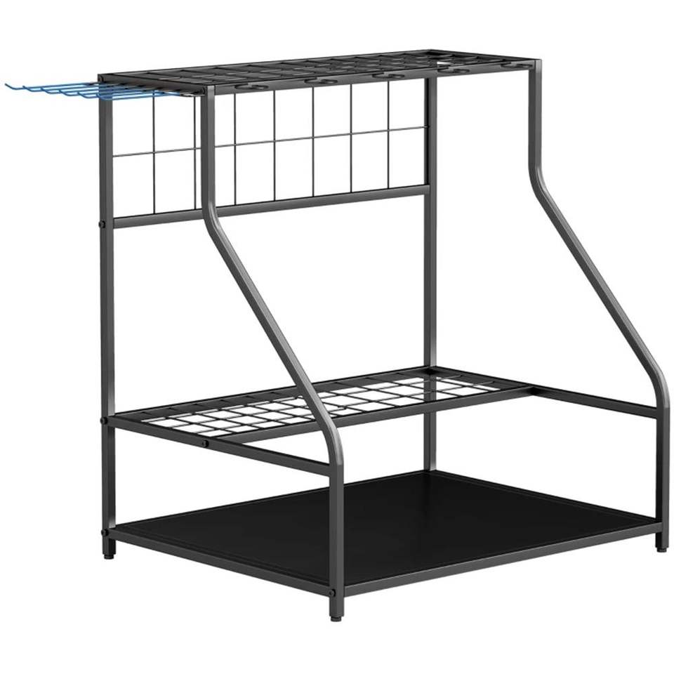 Porta Attrezzi da Giardino a 3 Ripiani Blu per Conservazione Utensili