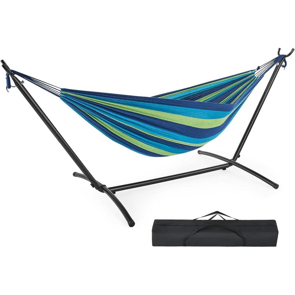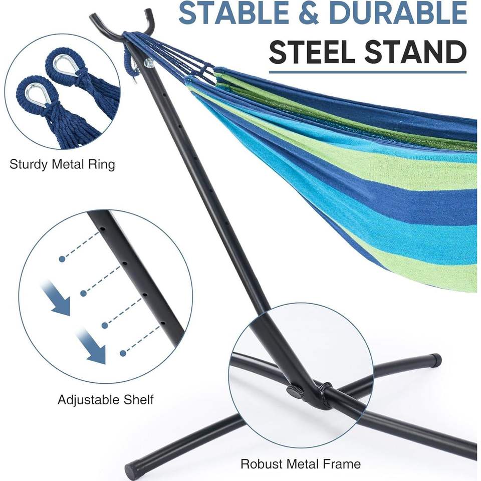 Blue 450lbs Heavy Duty Steel Frame Hammock with Space Saving Stand Portable for Indoor and Outdoor Use