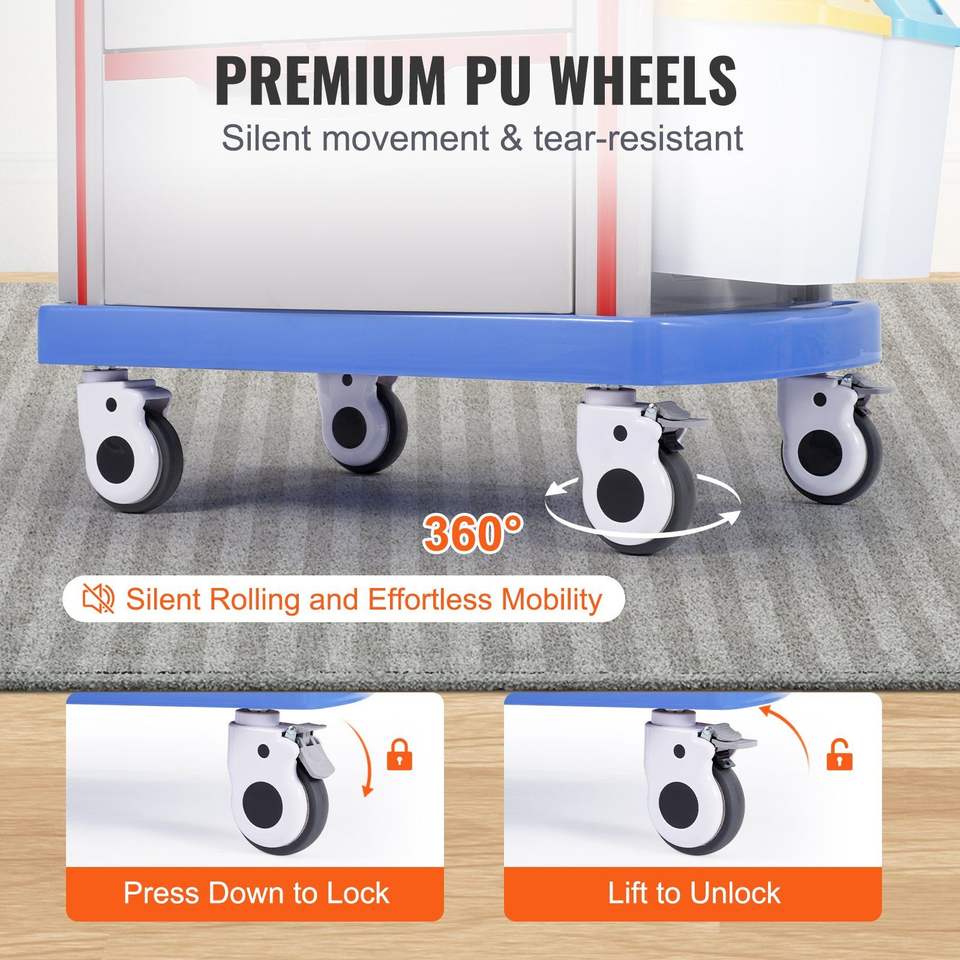 Carrello da laboratorio medico Mobile a 5 livelli blu con 5 cassetti e 2 bidoni della spazzatura