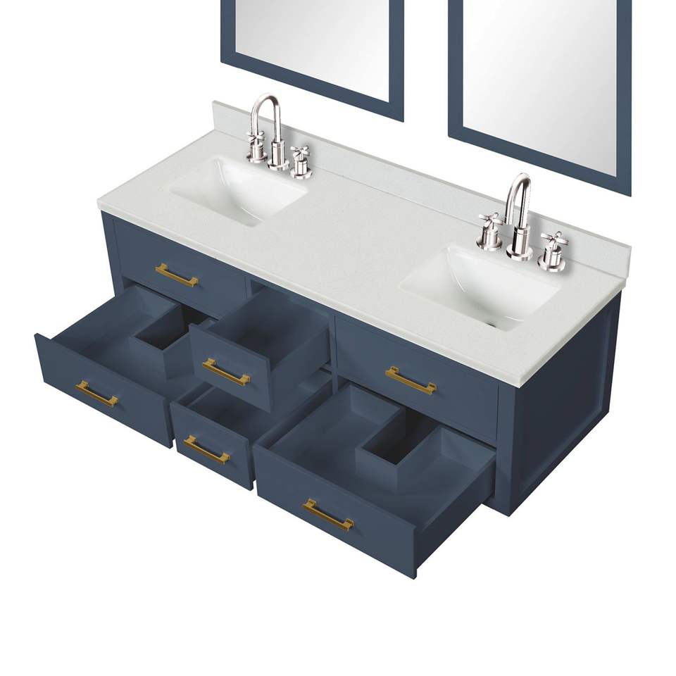 Blu 60 pollici. W X 22 In. D doppio bagno vanità con piano In marmo coltivato e 28 In. Rubinetto Set 2 specchi bagno vanità