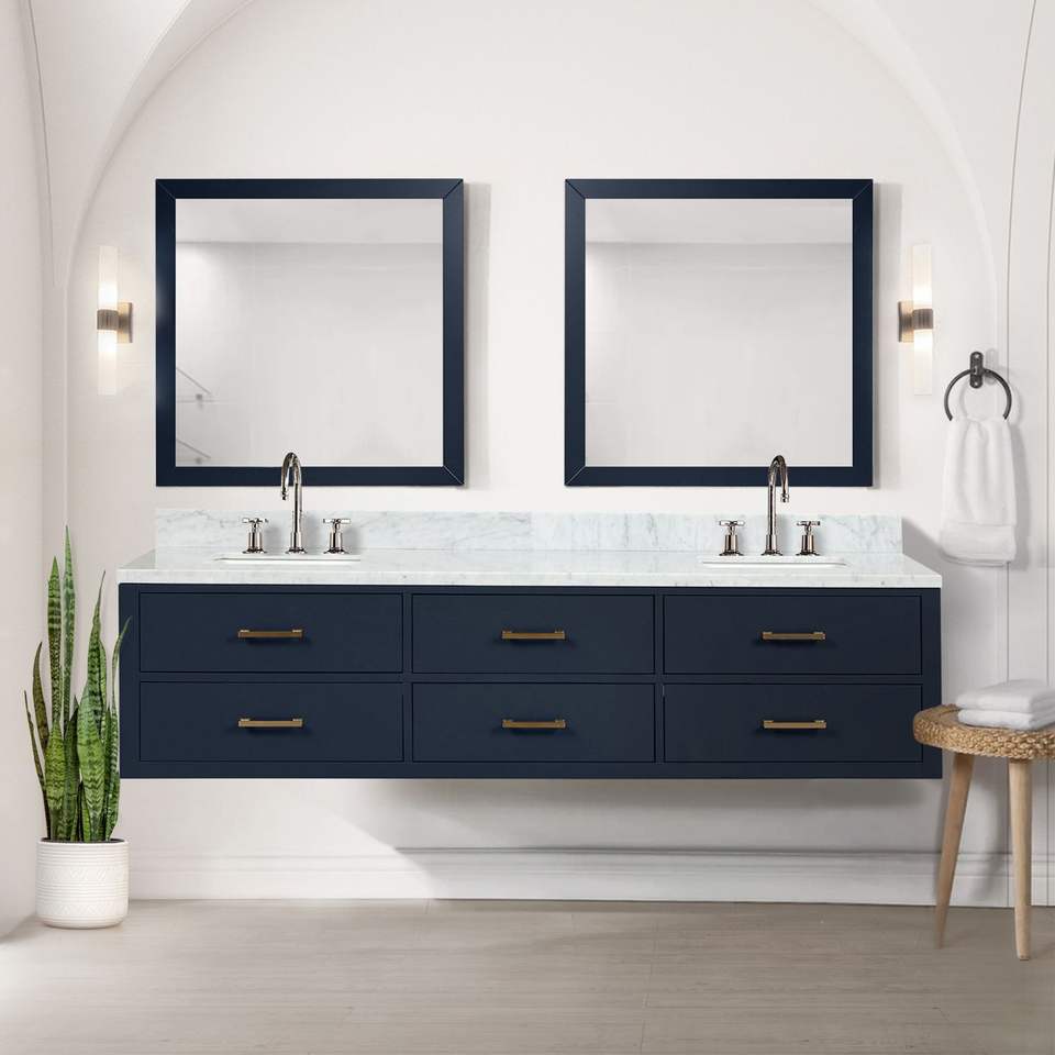 80 blu dentro. W X 22 In. D doppio bagno vanità con piano in marmo di Carrara e rubinetto Set per piccoli bagni