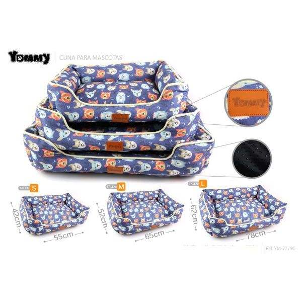 Cuccia per Cani in Lino con Stampa Gatto su Sfondo Blu, Set Tre Pezzi per Animali Domestici