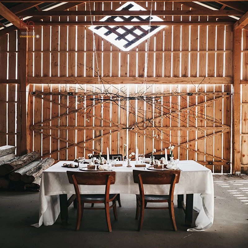 Blu Beige modello matrimonio grande bianco Fine tovaglia di lino naturale con pizzo cucito spesso enorme corridore verde all'ingrosso personalizzato