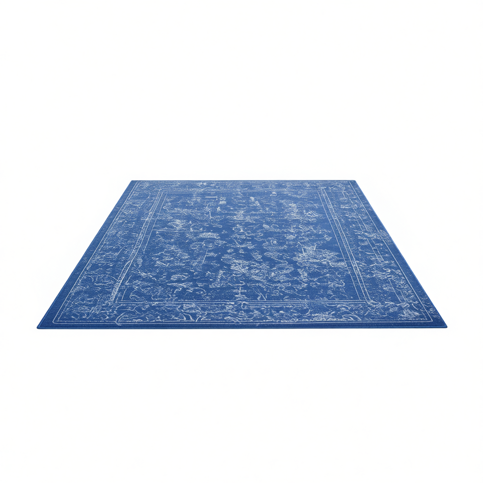 Tappeto Rettangolare Blu Crema Floreale 9x12 a Pelo Corto Lavabile in Lavatrice Adatto ai Bambini per Soggiorno Camera da Letto Sala da Pranzo