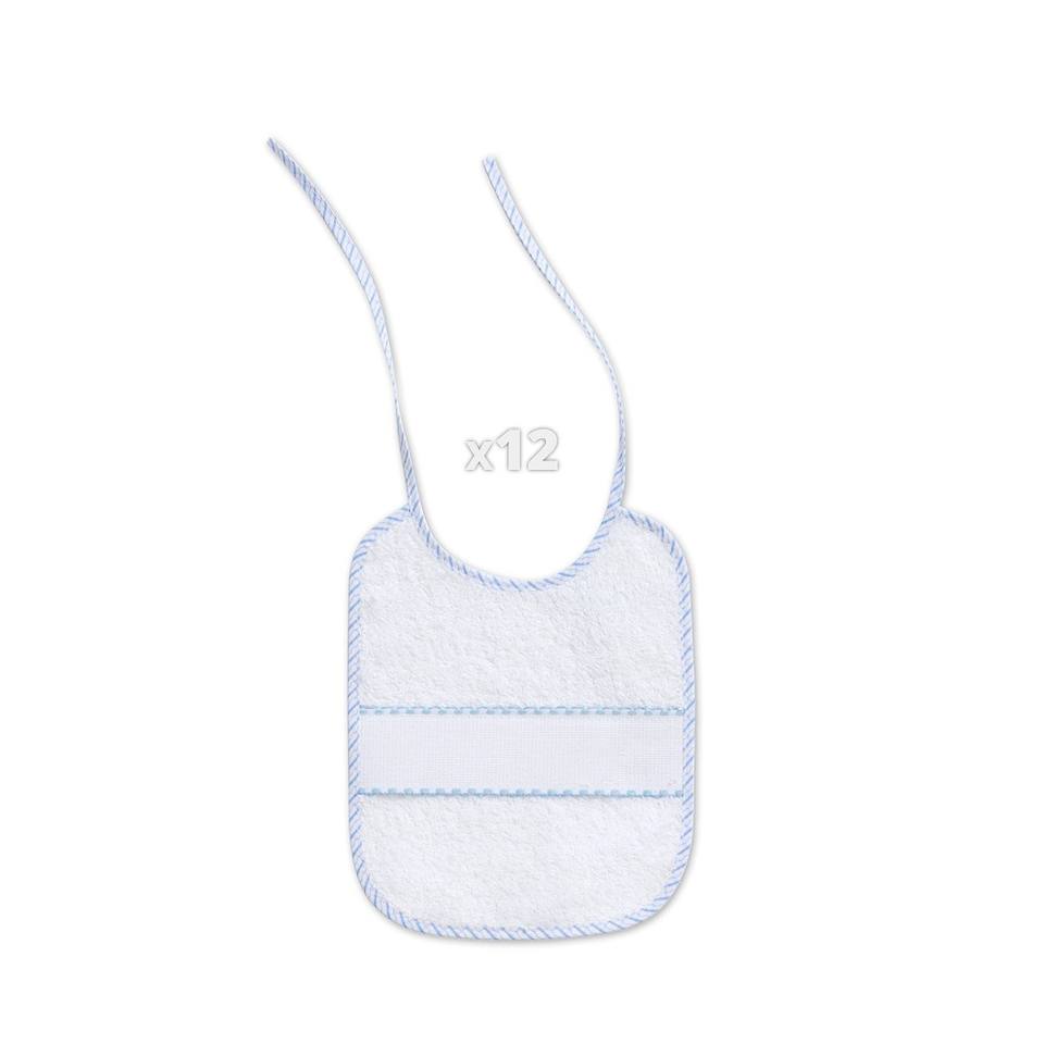 Bavaglino Blu con Ricamo a Croce per 0-12 Mesi, 20x25, Confezione da 2, in Cotone con Gancio