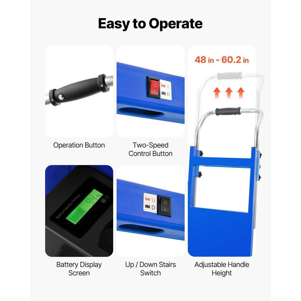 Blue Electric Stair Climbing Dolly 880lbs Capacity Hand Trucks for Office Use