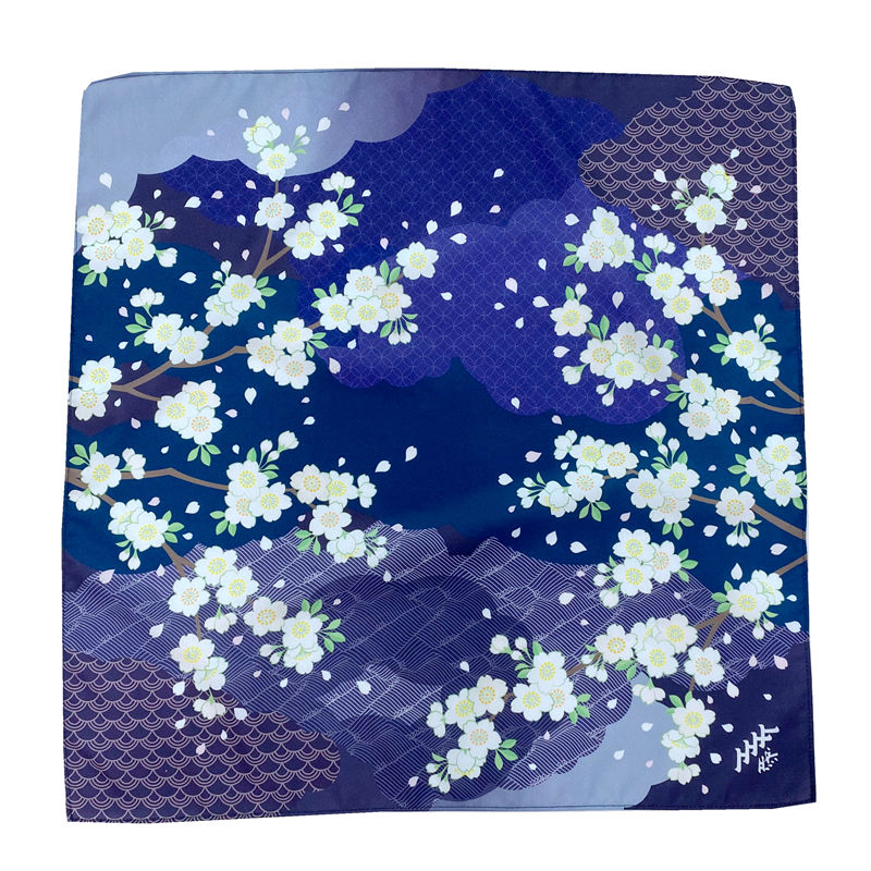 Blue Floral square Bandanas with Japanese Pattern and Autumn and Winter Atmosphere Very Photogenic