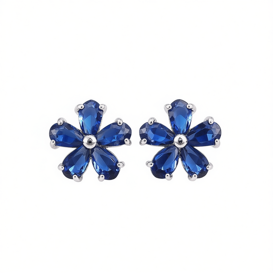 Blue Flower Stud Earrings Marquise Cut Gemstone Silver Plated Alloy Women's Party Jewelry