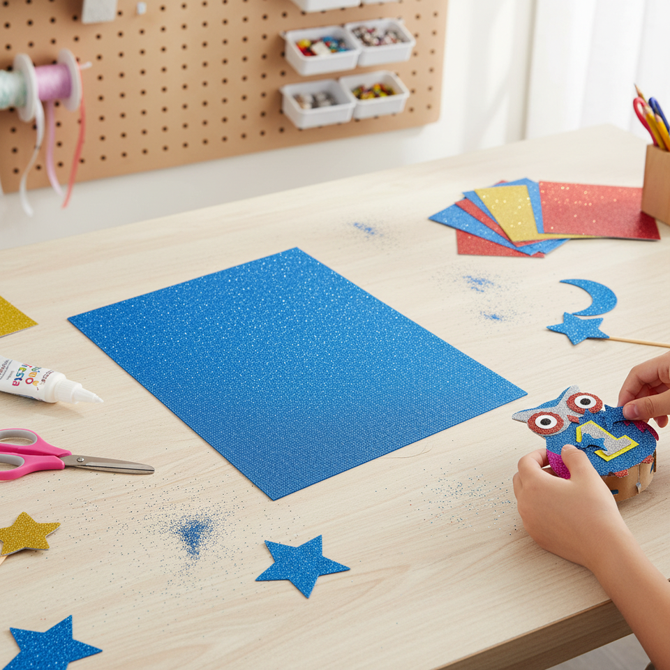 Blue Glitter 2MM Polyfoam Sheet Non-Adhesive for Crafts and Decorations