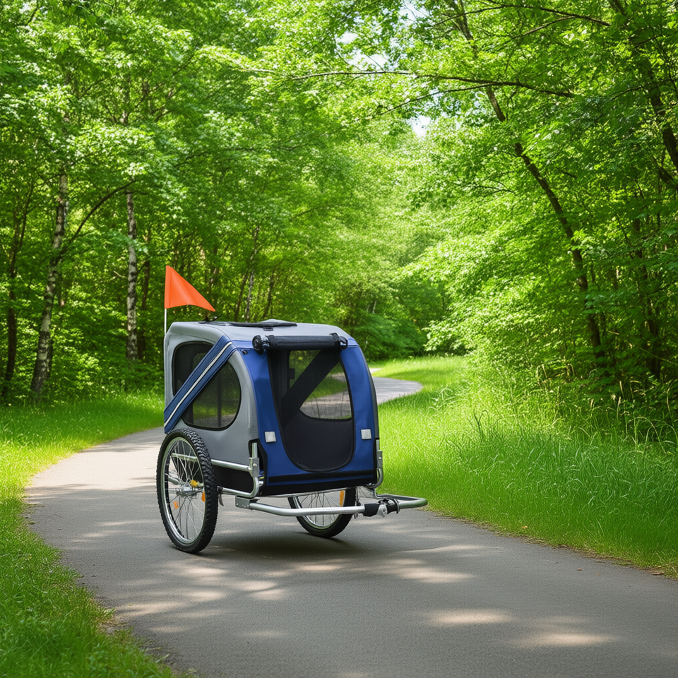 Blue Grey Pet Bike Trailer With Off Road Wheels 3 Entrances Mesh Screen Safe Travel Cart For Dogs