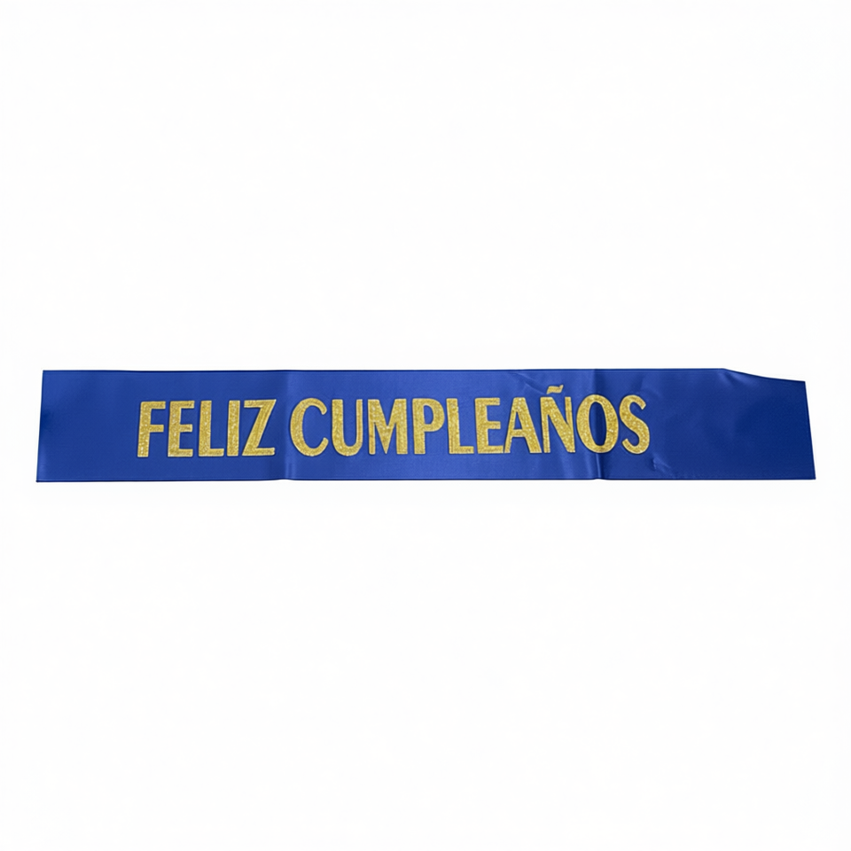 Fascia per Festa di Compleanno Blu con Scritta Dorata 'Party Love', Stampa Serigrafica Classica su Plastica, Confezione da 12 Pezzi