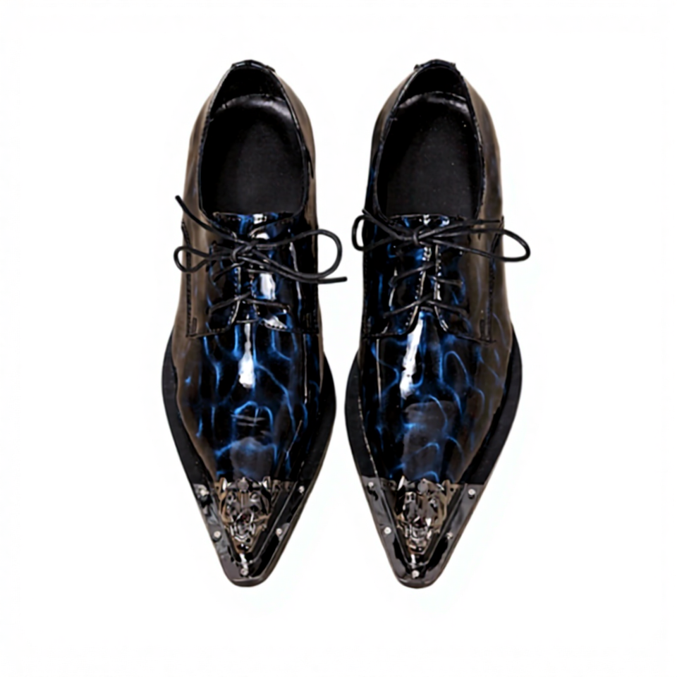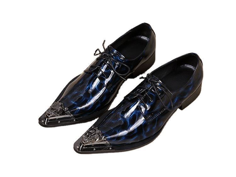 Scarpe da Uomo Casual Eleganti con Punta in Acciaio Blu, Stile Europeo e Americano, in Vera Pelle con Lacci, Moda Personalizzata