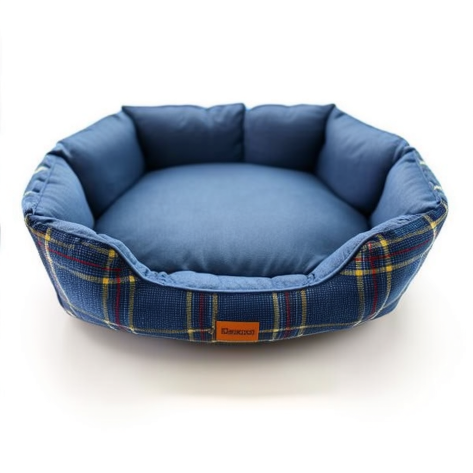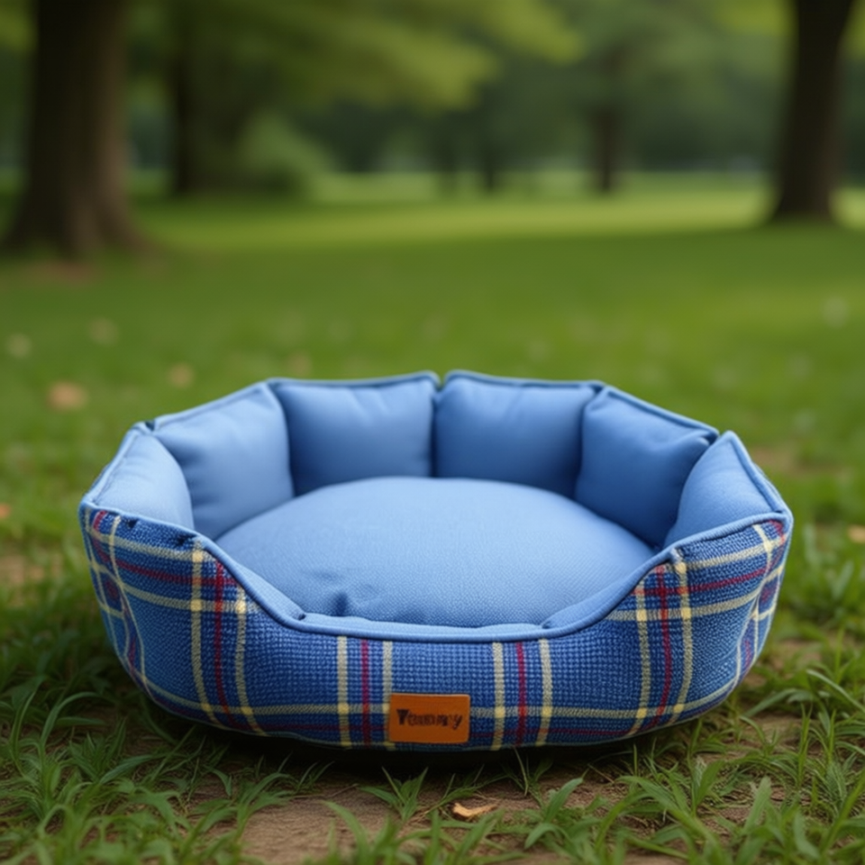 Blue Linen Nest with Seven Cornered Square Checkered Design for Pets