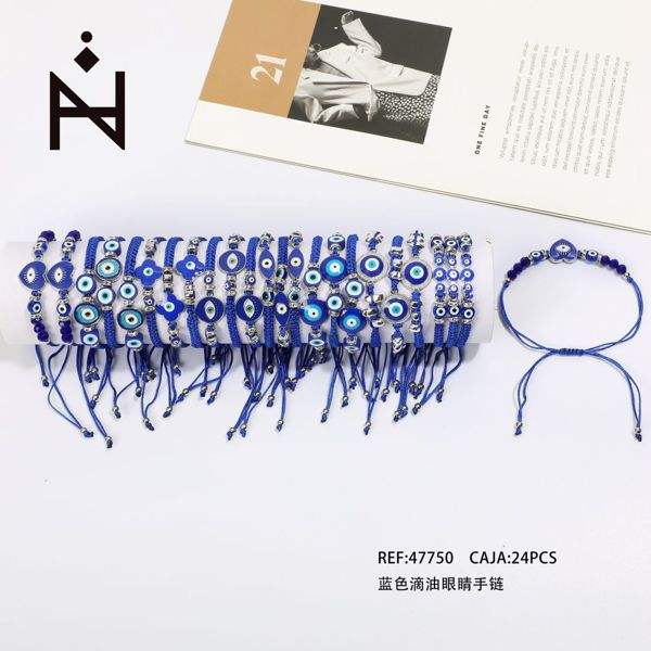 Set di 24 Braccialetti con Goccia d'Olio Blu, Gioielli Portafortuna alla Moda