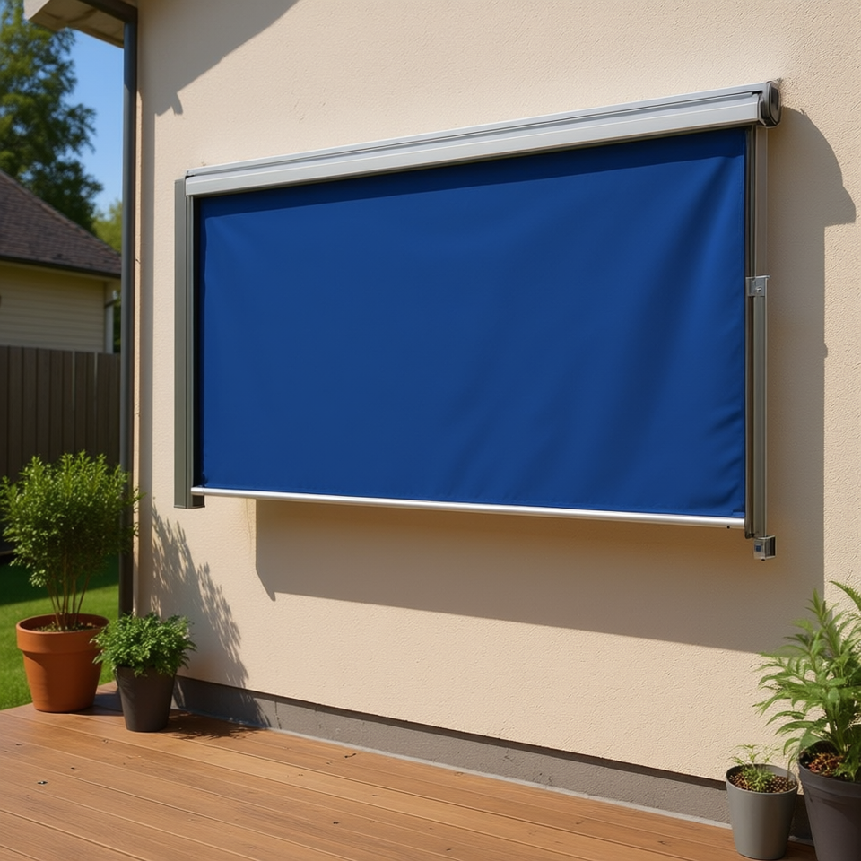 Blue Retractable Side Awning 31.5x118.1 In Wall Mounted Outdoor Shelter Manual Operation Aluminum Frame Polyester Sail