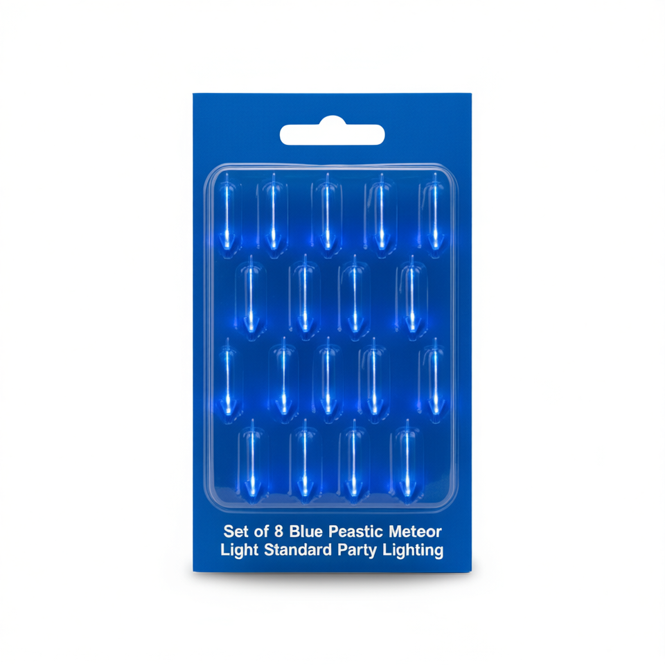 Set di 8 luci a forma di meteora in plastica blu per illuminazione standard per feste