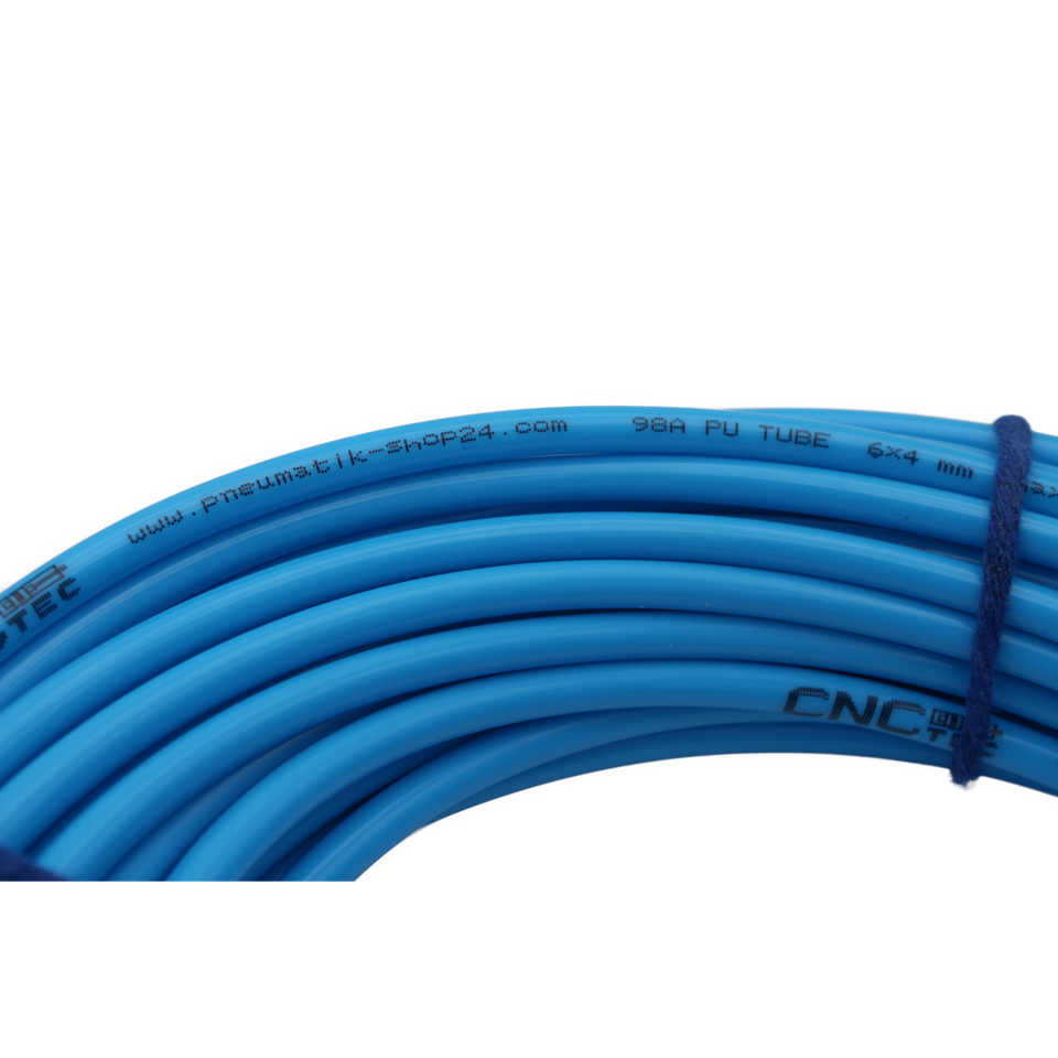 Blue Polyurethane Pneumatic Hose Ø 6mm Reel 50 Meters Steel Wire Reinforcement Smooth for Air Compressor Truck Code PUN 6X4