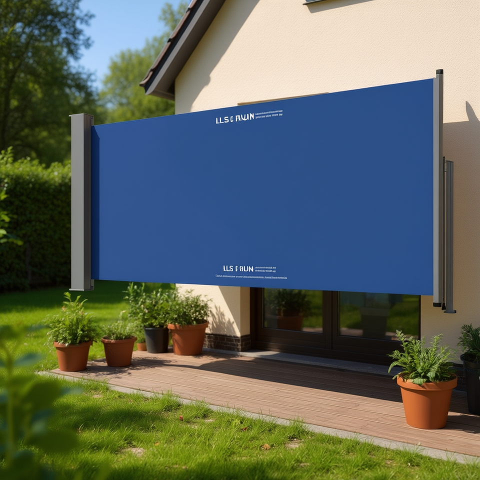 Tenda Laterale Blu in Tessuto Poliestere con Telaio in Acciaio, Retrattile Manuale, Montaggio a Parete, Stile Moderno