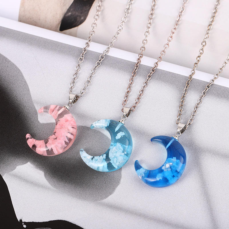 Blue Sky Cloud Resin Necklace Glow in the Dark Resin Moon Night Luminous Pendant Necklace