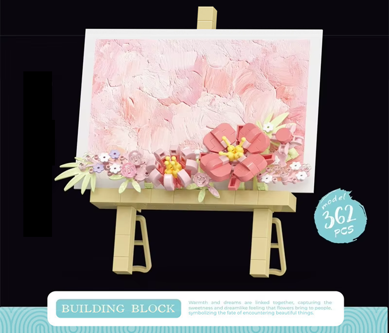 Blue Sky Floral Easel Art Building Block Set | 3D Flower Painting Brick Kit | Kawaii Home Decor & Gift