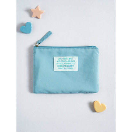 Blue Square Pau Cosmetic Bag with Label Point Small Size Case