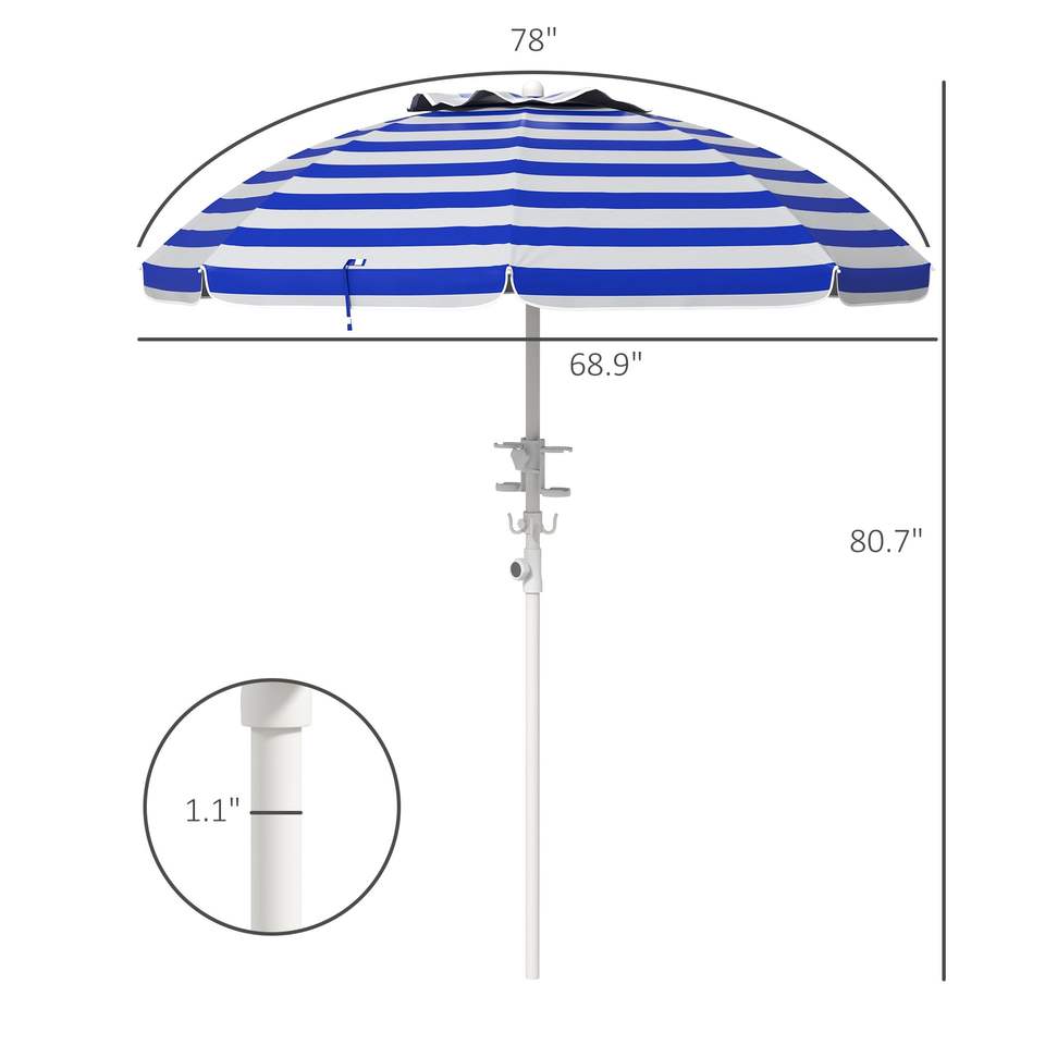 Ombrellone da Spiaggia Blue Stripe 5.7 con Regolazione Inclinazione, Altezza Regolabile, 2 Portabicchieri, Ganci, Ventilazione e Volant - per Viaggi