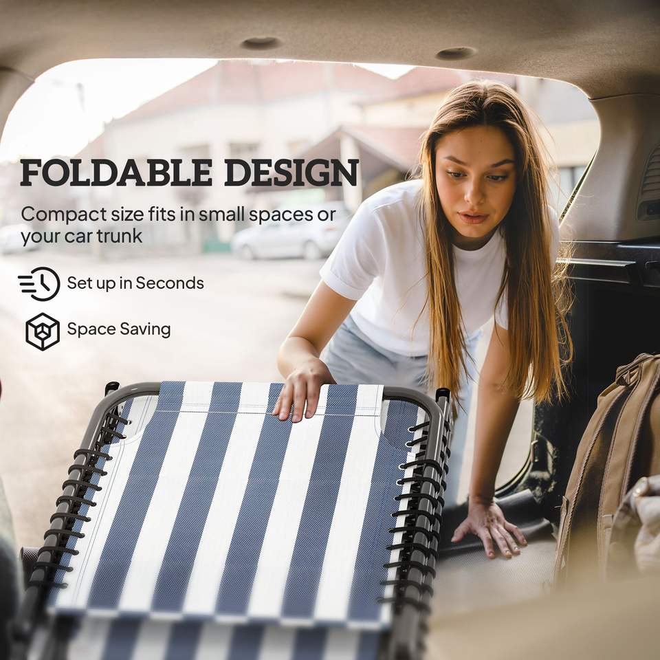 Sdraio Pieghevole Blu e Bianca per Piscina, 4 Posizioni Reclinabili, Cuscino Posteriore, Seduta in Rete Traspirante con Elastici, Modello D0100XF2LVY, da Spiaggia