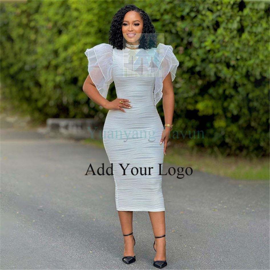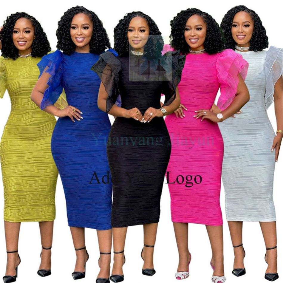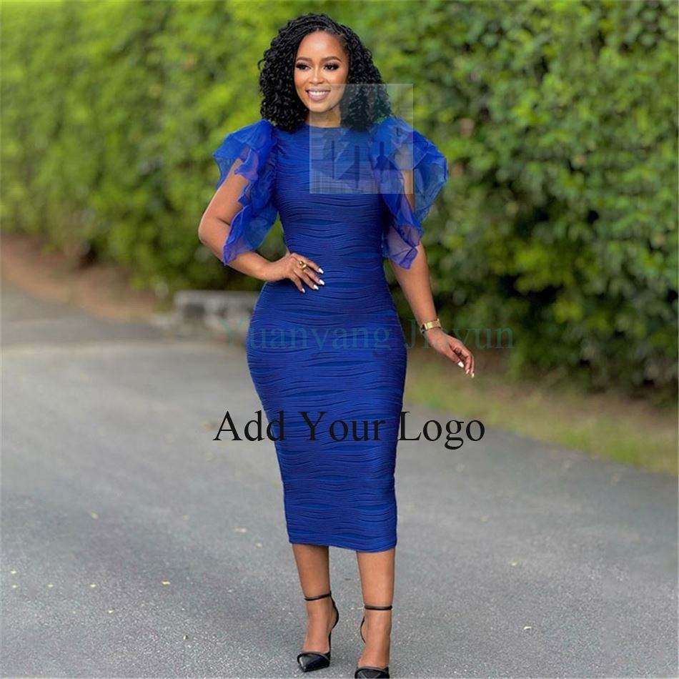 Abito Tradizionale Africano Blu per Donna, Midi di Alta Qualità con Maniche a Volant, Aderente e con Inserti