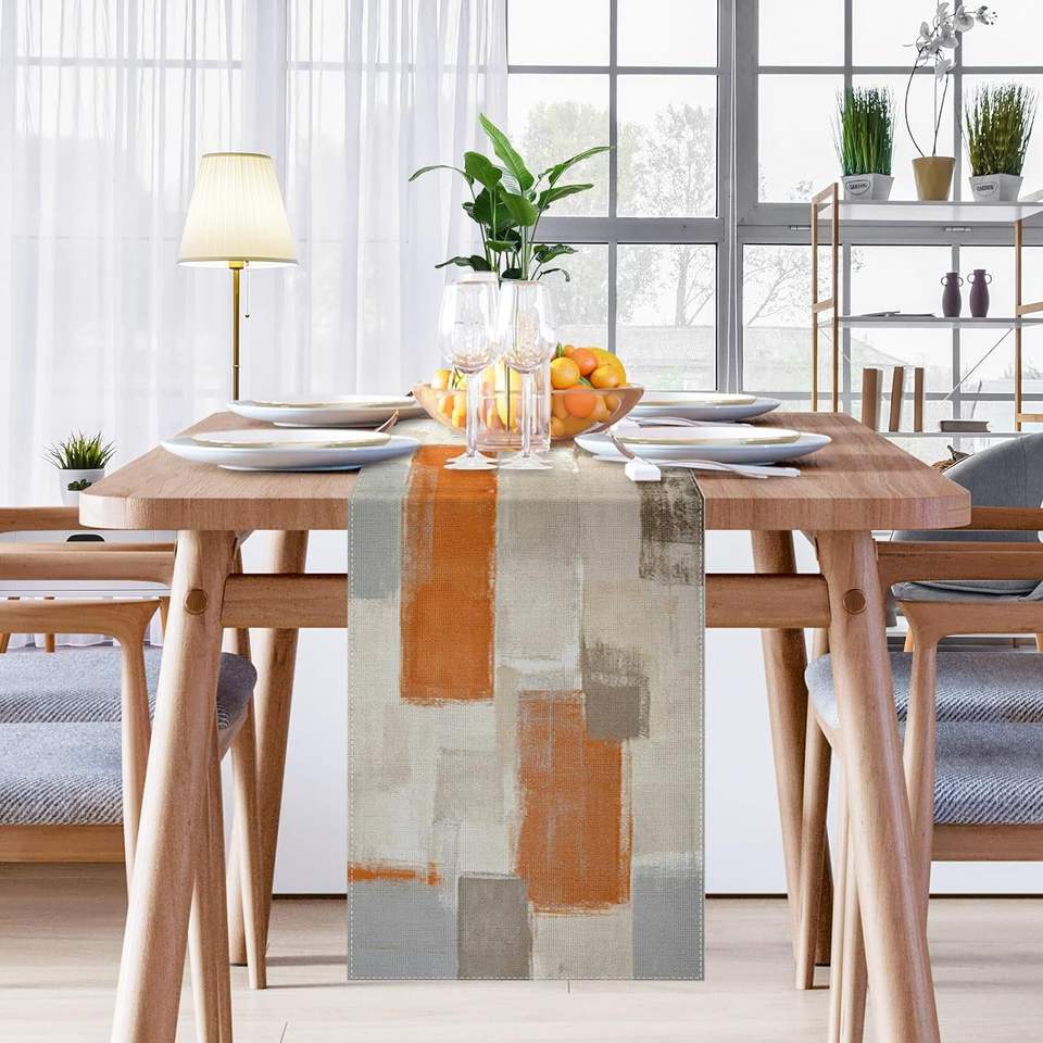 Corridore da tavola blu e arancione, Vintage astratta e disordinata ruggine pittura decorazione da pranzo per la cucina tavolino per cene di famiglia vacanza