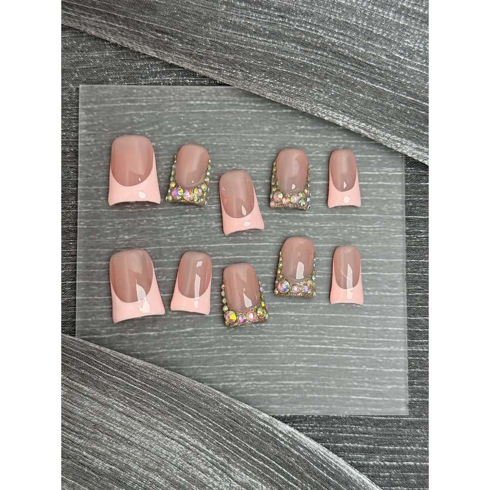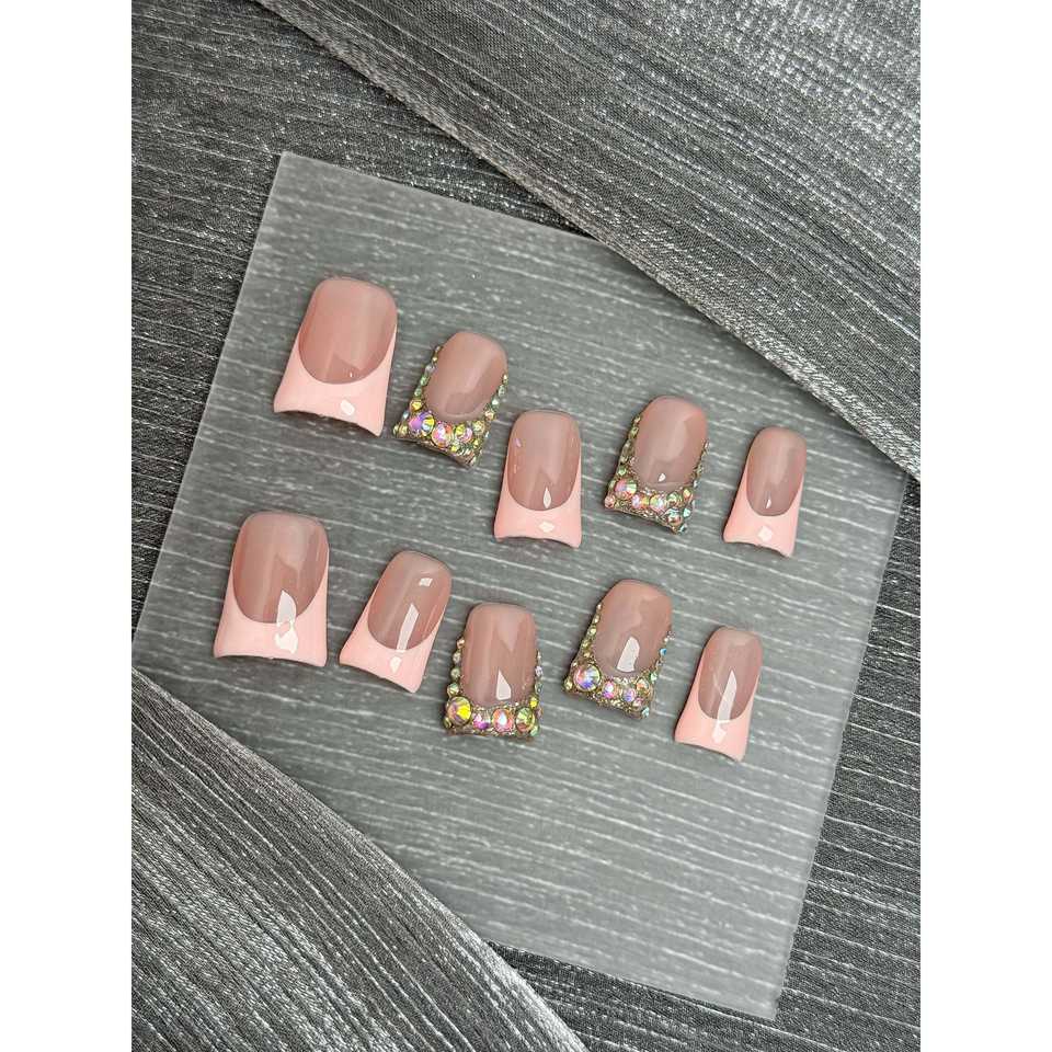 Unghie Finte French Press-On Effetto Cristallo Blush: Design Elegante e Chic per gli Appassionati di Nail Art
